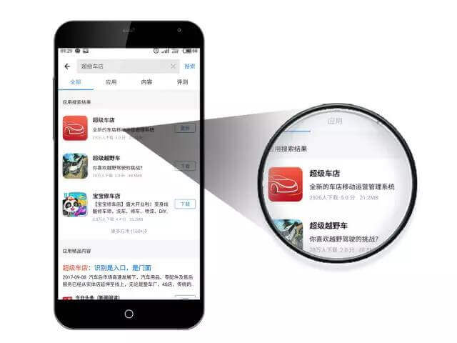①打開應(yīng)用商店(應(yīng)用寶),搜索超級車店,找到超級車店應(yīng)用,并選擇更新(下載)。