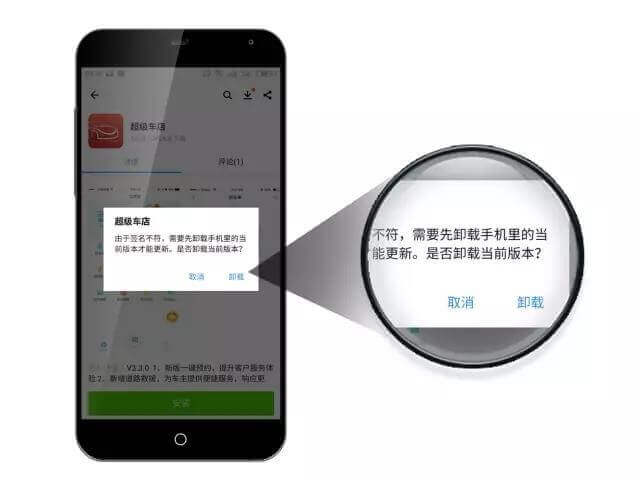 ③當(dāng)提示簽名不符,請根據(jù)提示卸載當(dāng)前版本應(yīng)用。